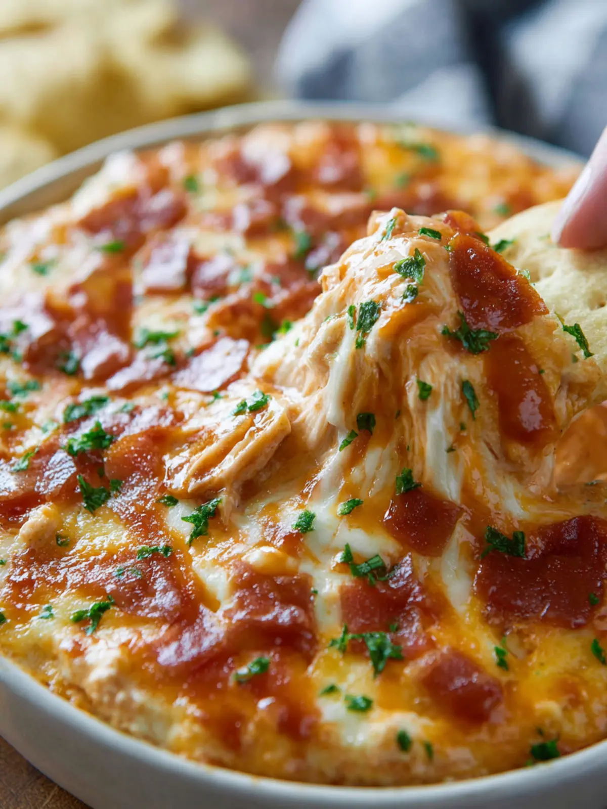 When it comes to enjoying your BBQ chicken dip, the serving possibilities are deliciously endless. This creamy, smoky dip is perfect for a relaxed gathering or a lively game day, and it pairs beautifully with a variety of accompaniments that elevate the entire experience.