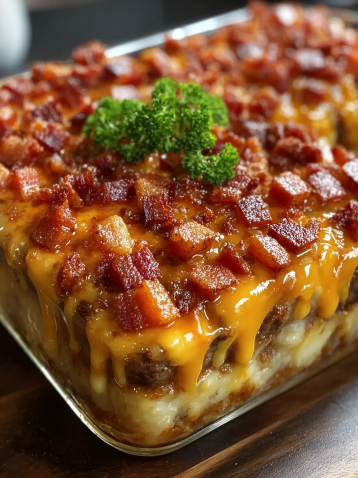 The star ingredient here is bacon, which adds a smoky richness and irresistible crunch that elevates the entire dish. Pairing it with ground beef and gooey cheese creates a melt-in-your-mouth experience that’s hard to resist. And if you’re someone who appreciates versatility, this casserole can be customized with your favorite toppings, just like a burger. Feeling adventurous? Try adding jalapeños for a spicy kick or some sautéed mushrooms for an earthy flavor.