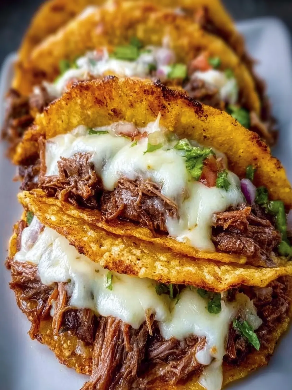 A melty layer of Oaxaca or mozzarella cheese adds the comforting creaminess we crave. It blends seamlessly with the savory flavors of beef, transforming each taco into an indulgent experience that you won’t want to miss.