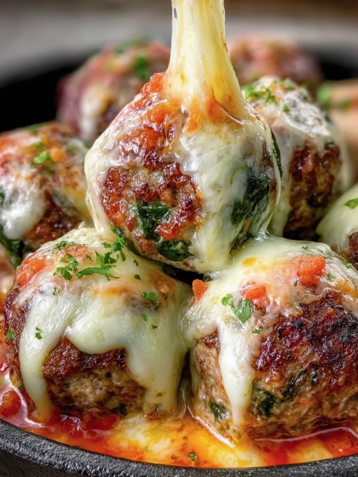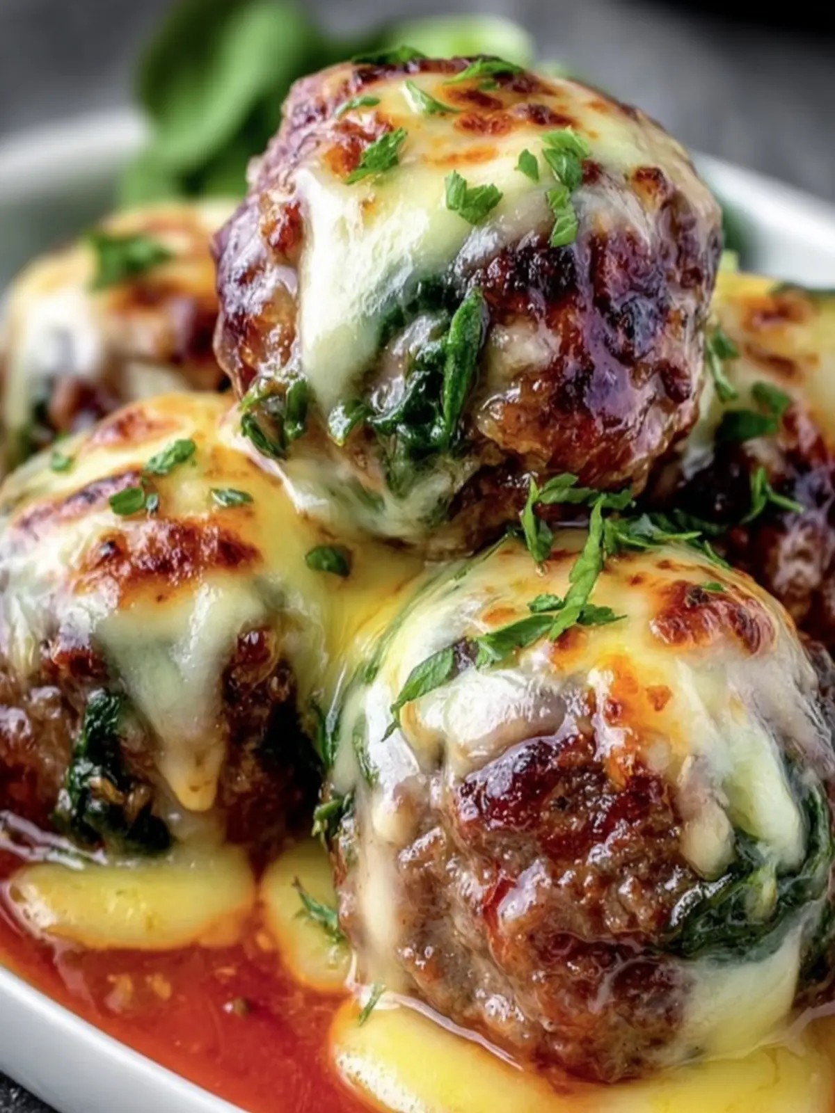 Cheesy Spinach Stuffed Meatballs