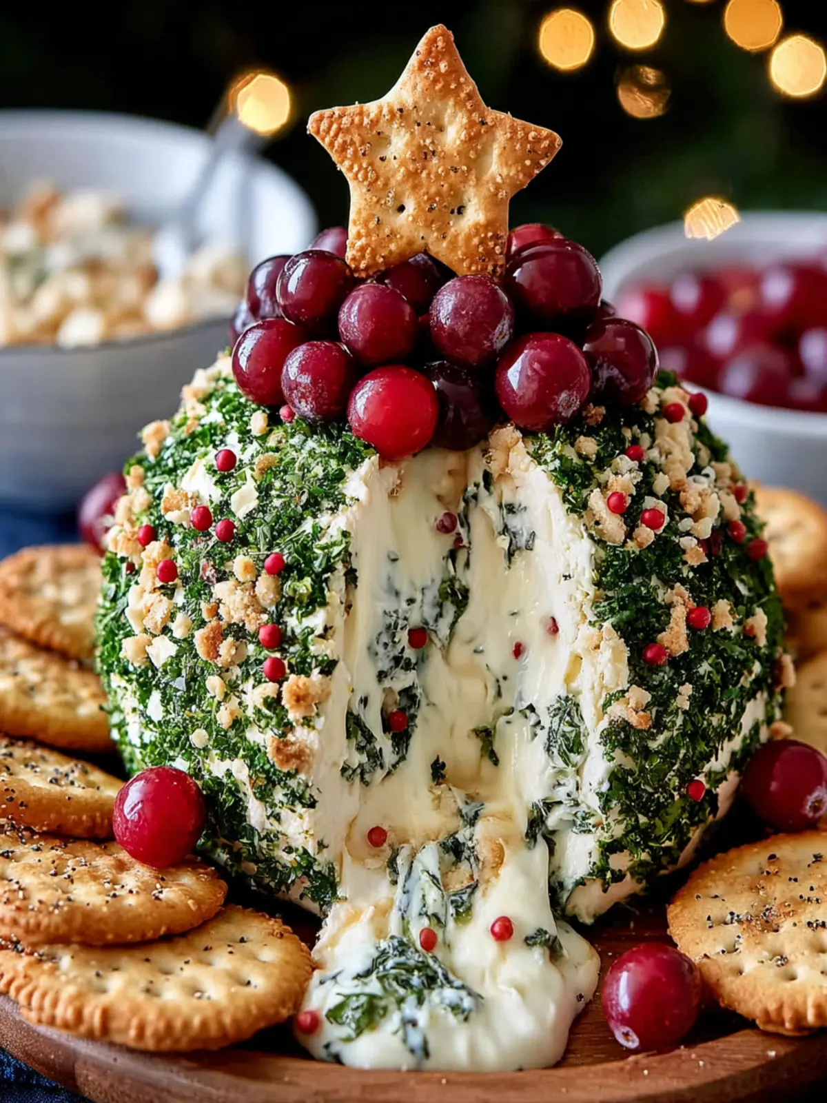 Your Christmas Tree Cheese Ball will undoubtedly steal the limelight at any holiday gathering. To ensure your festive cheese creation truly shines, consider pairing it with an array of delightful accompaniments that make each bite a little celebration.