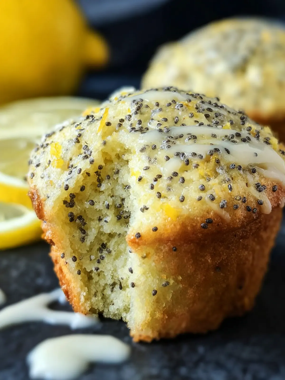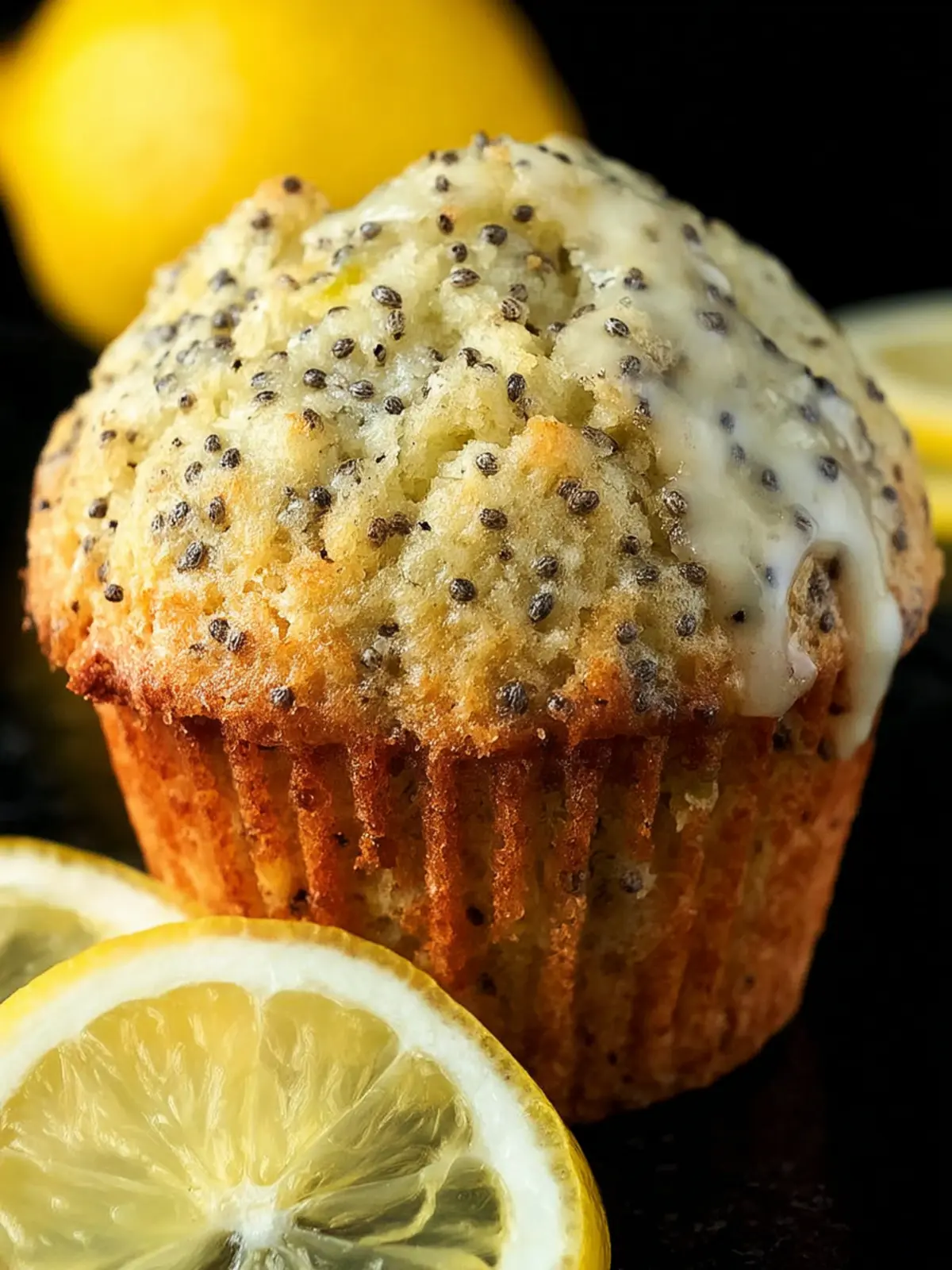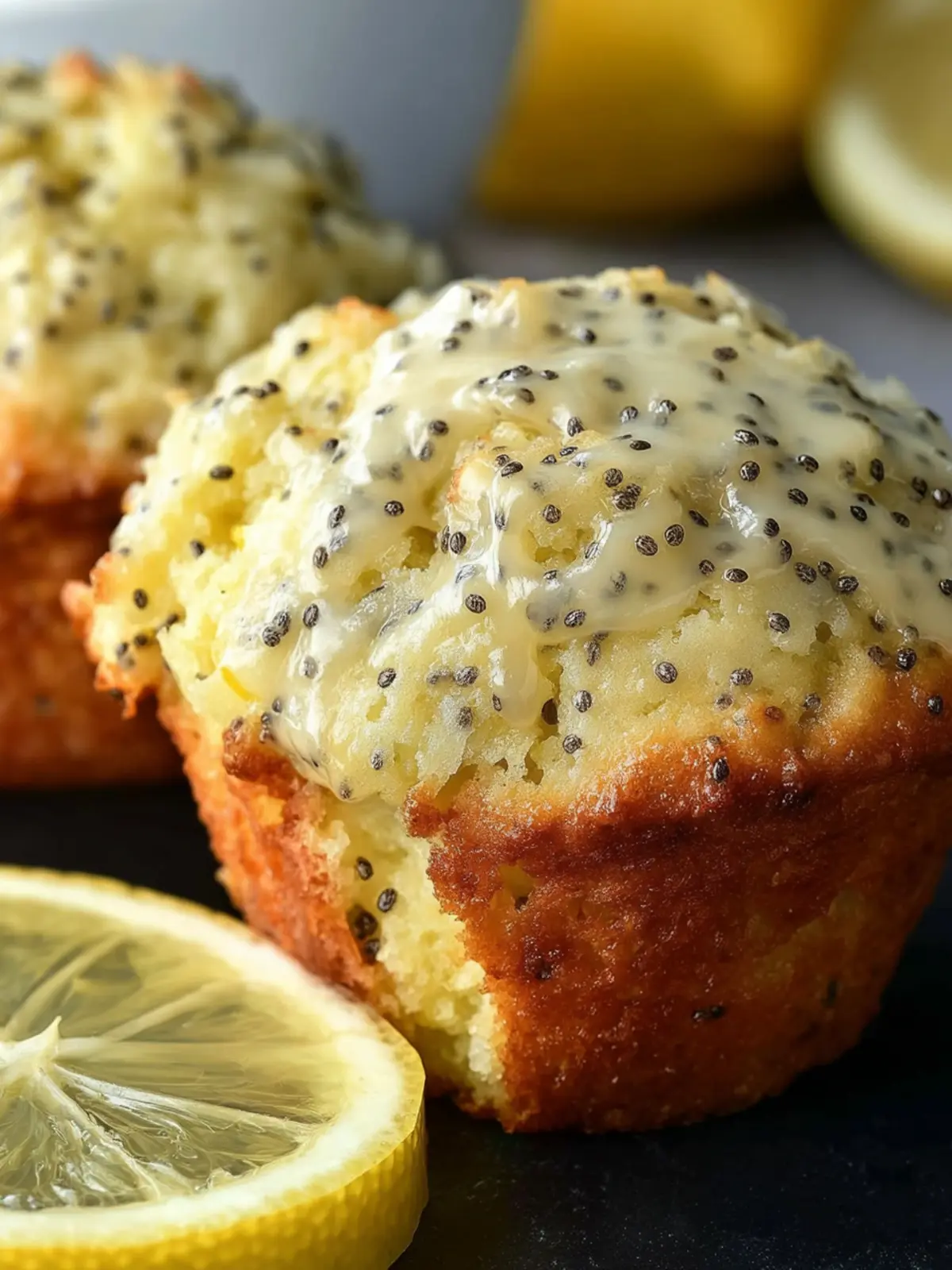 Delicious lemon poppyseed muffins with a light glaze, perfect for breakfast or a snack!