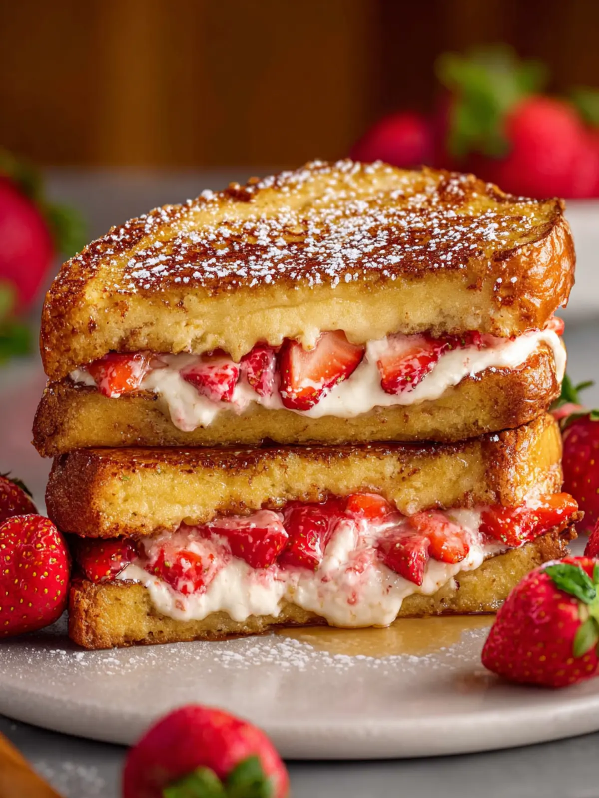 This delicious stuffed French toast combines creamy cream cheese, fresh strawberries, and a hint of cinnamon for a perfect breakfast treat.