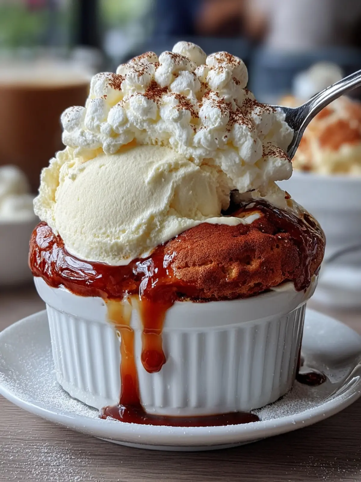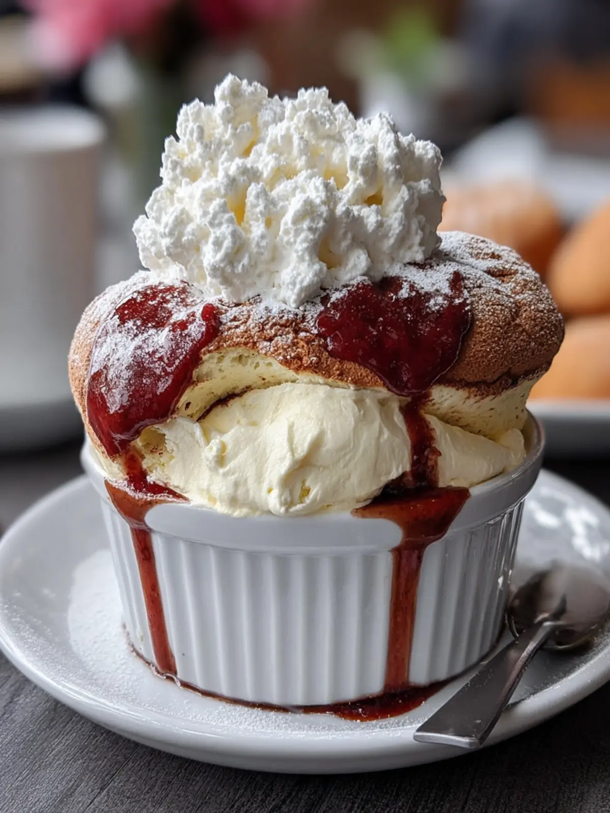 An Eye-Catching Presentation: The soufflé puffs up beautifully while baking, presenting a delightful contrast to the dark cocoa dusting on top. It’s an exciting centerpiece on any table.