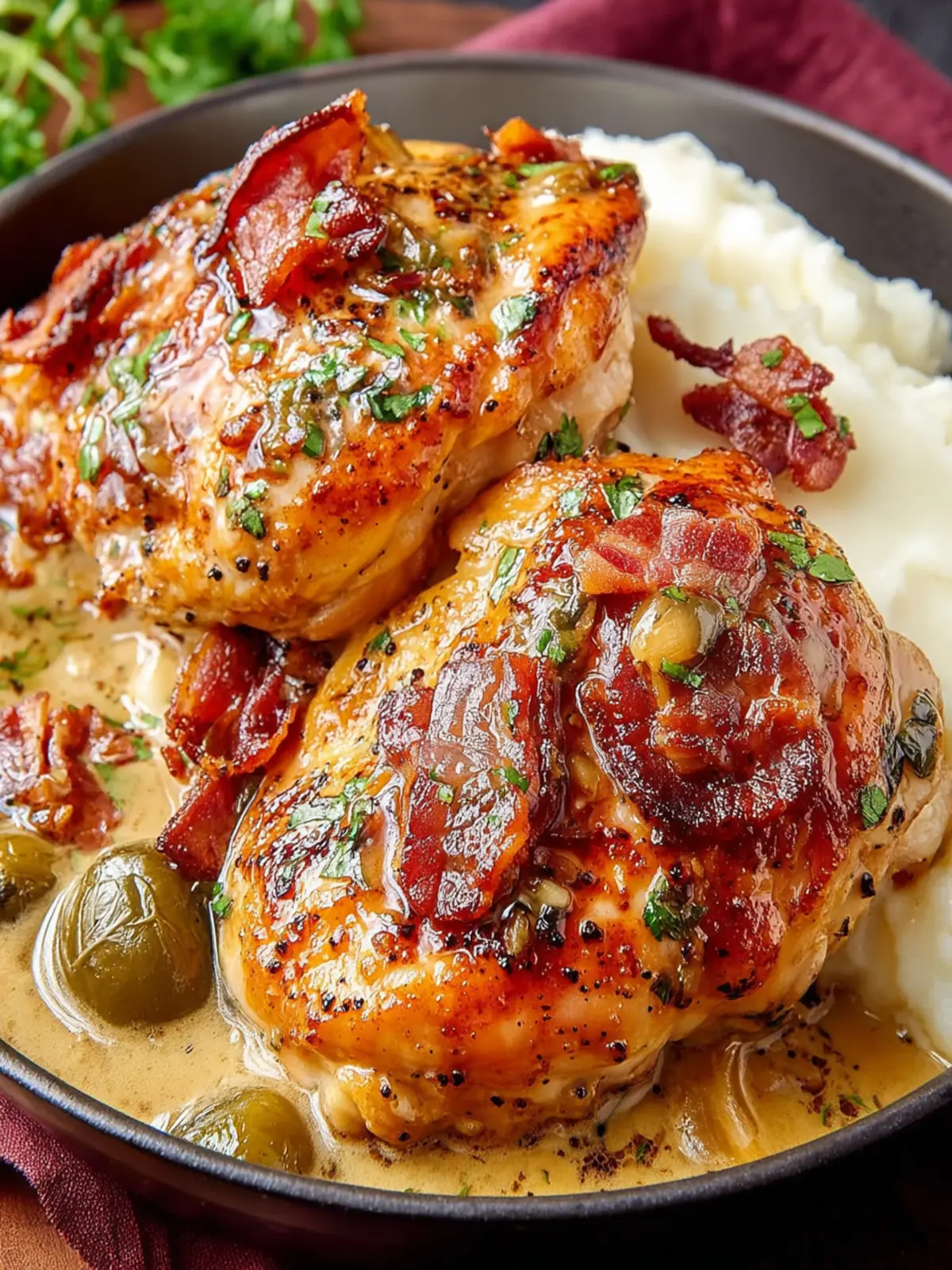 • Creamy Mashed Potatoes: The smooth texture of buttery mashed potatoes pairs beautifully with the savory chicken and its luscious sauce. A little garlic and a sprinkle of herbs add extra charm.