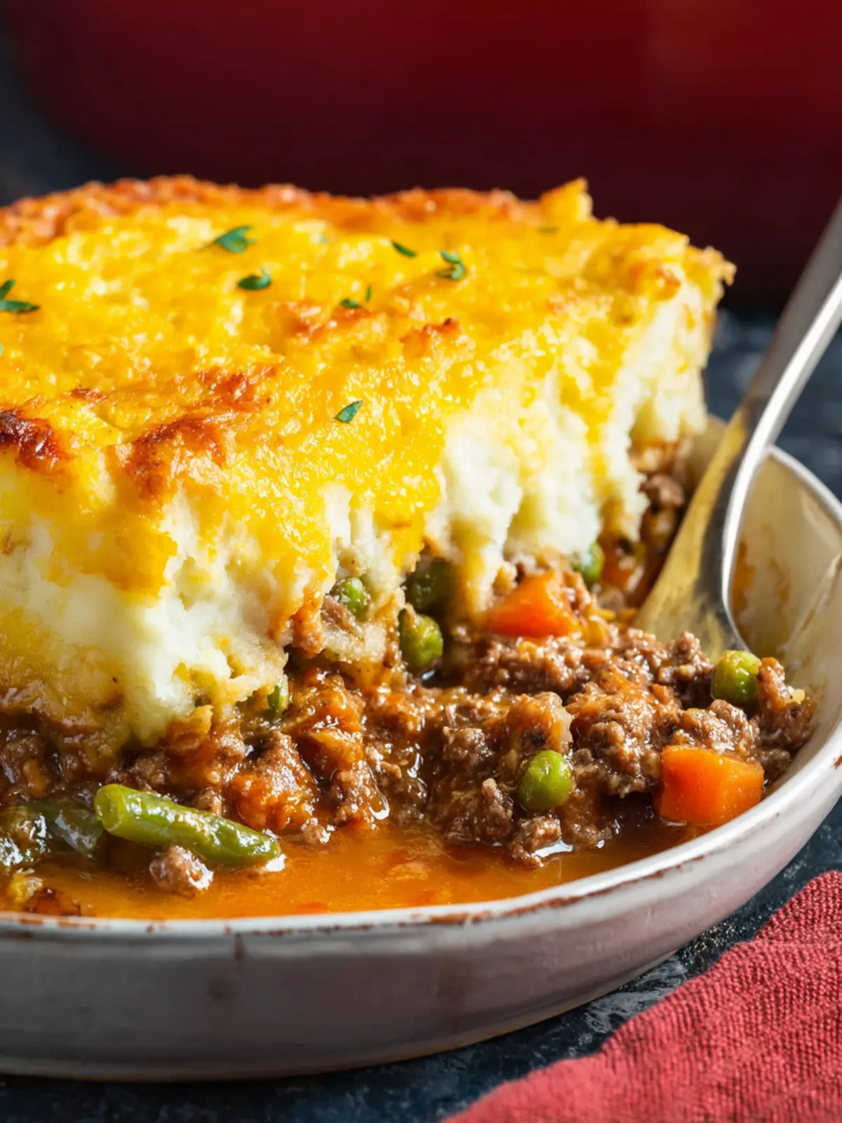 Traditionally, shepherd’s pie is a hearty meal made with minced lamb and topped with creamy mashed potatoes. It’s a kitchen staple that embodies warmth and family togetherness.