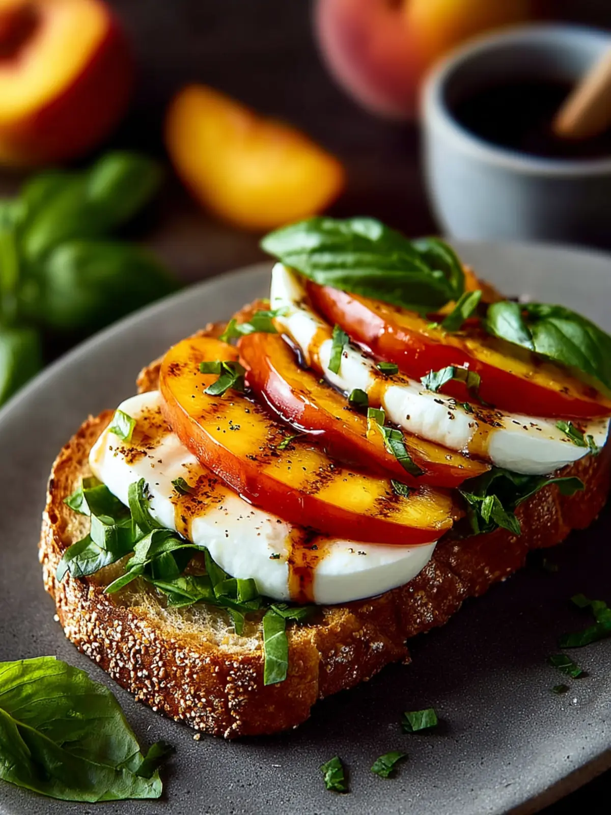 • Toast your bread lightly before assembling. This adds an appealing crunch and helps prevent sogginess from the juicy peaches and mozzarella.