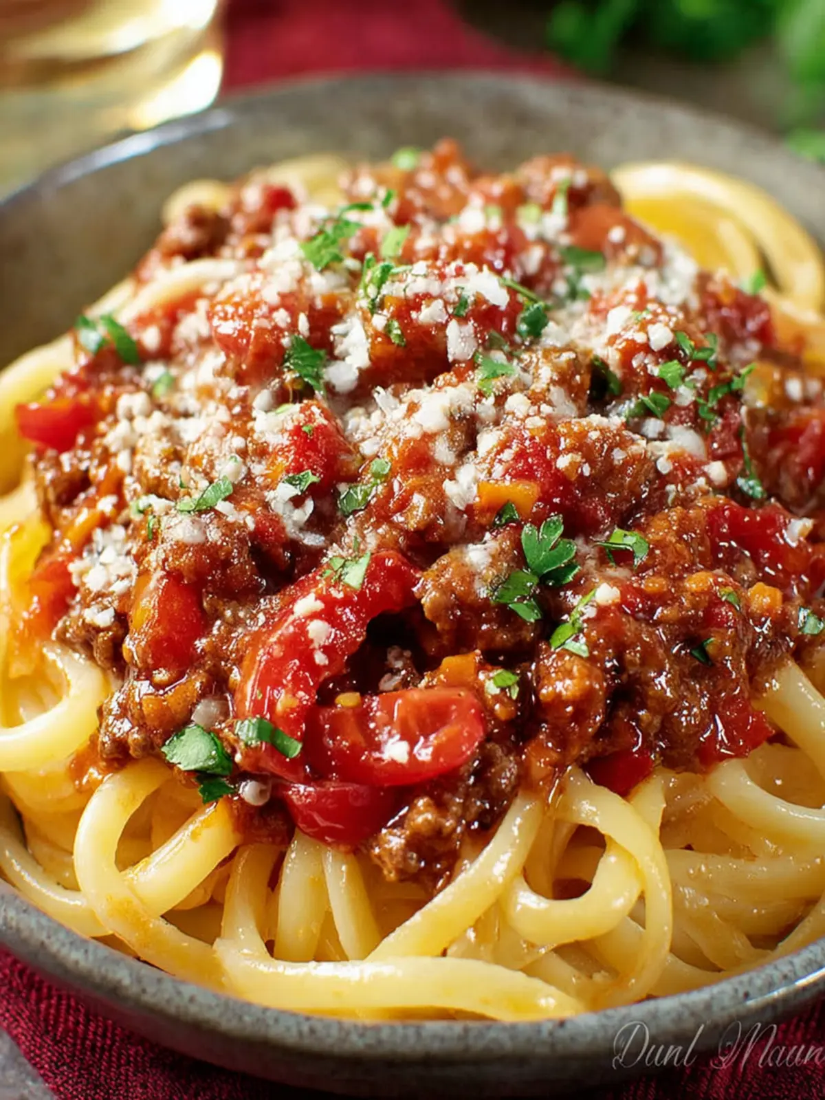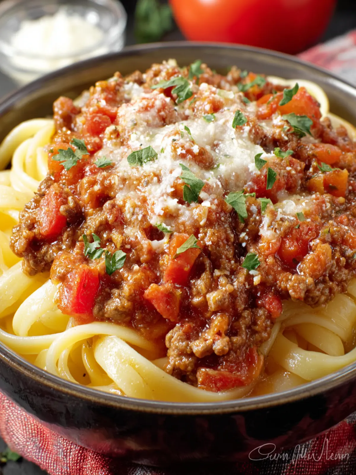 A savory ground beef tomato sauce that’s perfect for pasta or as a base for other dishes.