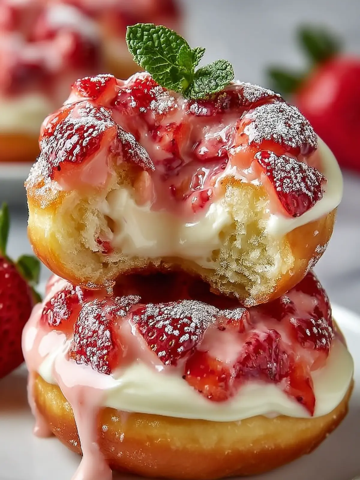 Pair with Beverages: Enjoy these donuts with iced coffee or fresh-squeezed orange juice for a refreshing breakfast or snack. The fruity flavors of the strawberry cream beautifully complement the bitterness of coffee.