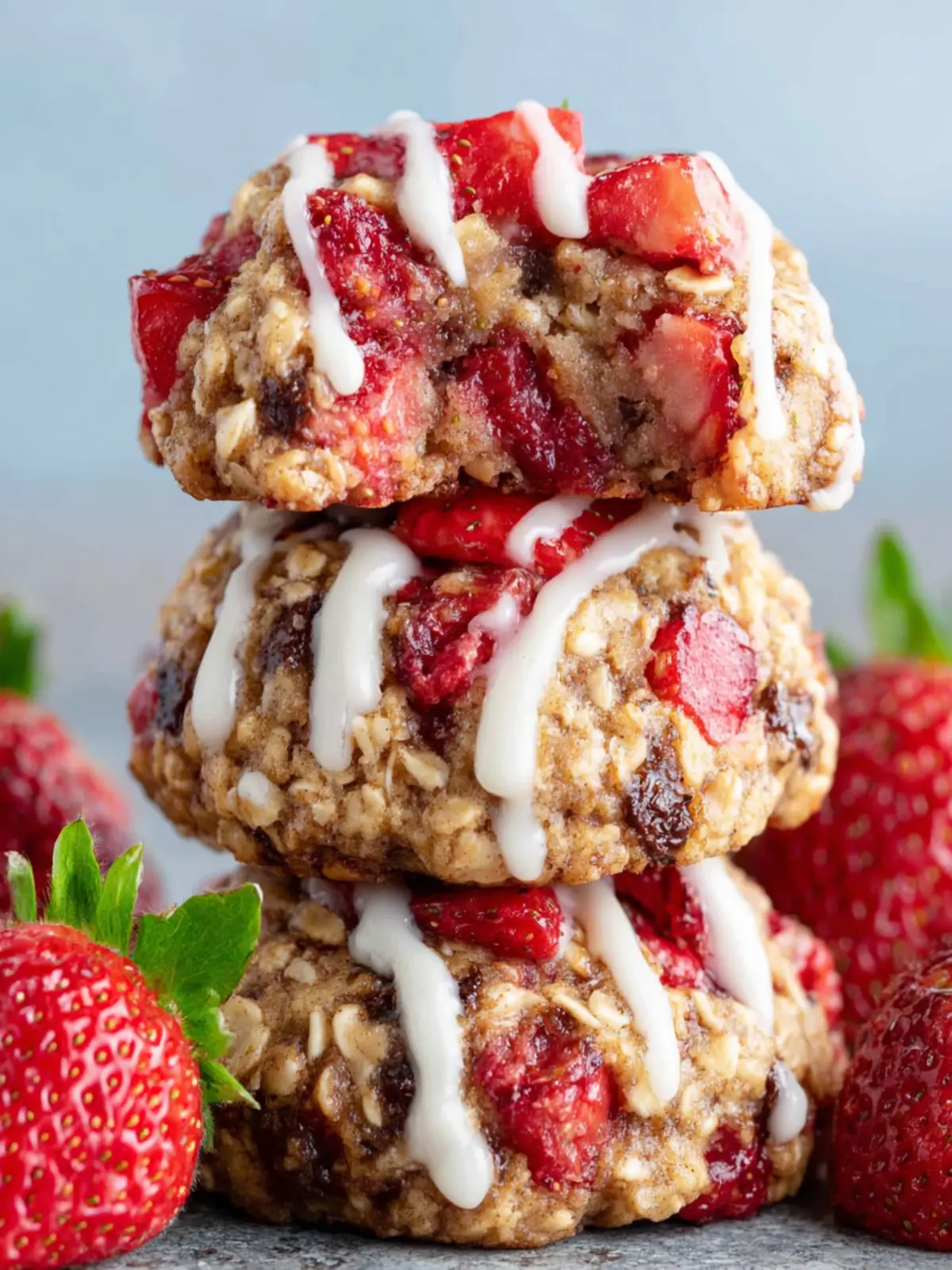 Under proper storage conditions, these strawberry oatmeal cookies can last about 5 to 7 days at room temperature and up to two weeks in the refrigerator. If you want to save some for later, they freeze wonderfully! Just make sure to wrap them tightly in plastic wrap or place them in a freezer-safe container. They can be frozen for up to three months. When you’re ready to enjoy, just thaw at room temperature or warm them in the oven for a few minutes—fresh out of the oven goodness, every time!