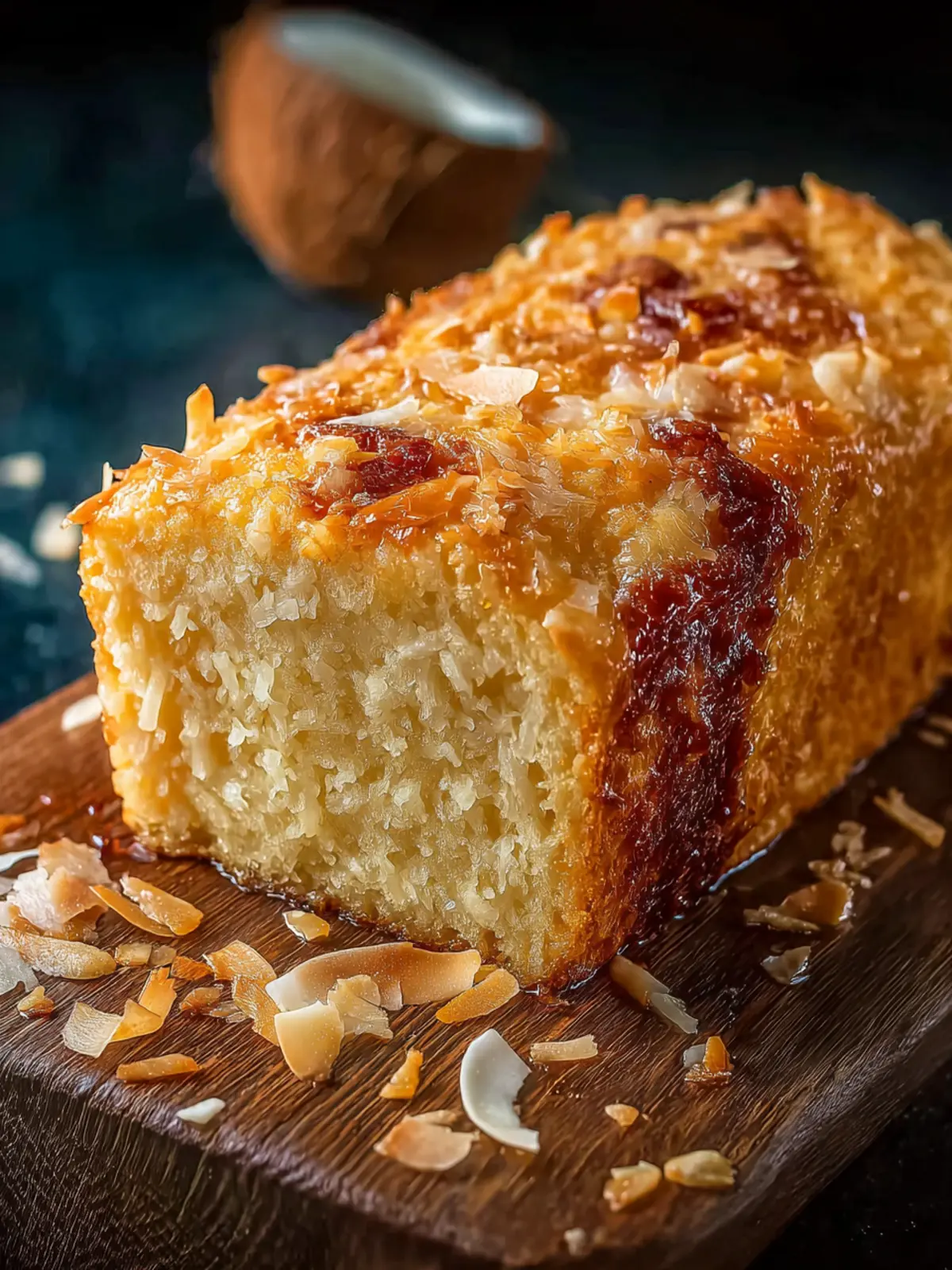 This moist and fluffy coconut loaf bread is perfect for breakfast or as a snack.
