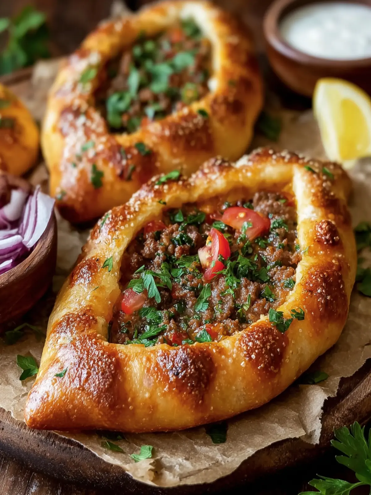 Turkish Meat Pide with Herbs: Irresistibly Flavorful Delight