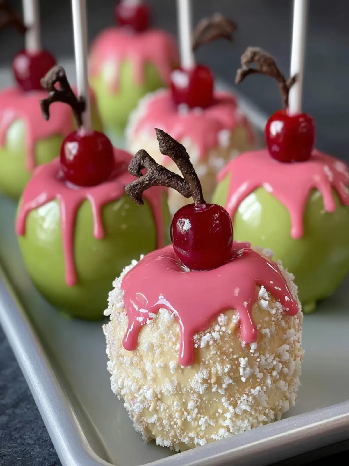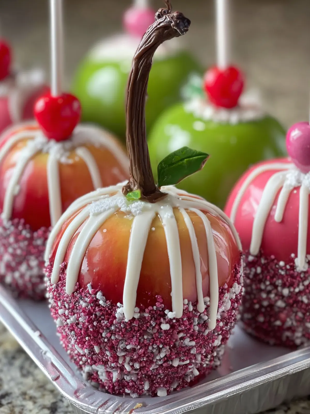 Whether you’re hosting a holiday party, looking for a fun activity with your kids, or simply wanting a festive treat, these candy apples fit the bill. The bright colors and unique toppings create a sense of wonder, making them perfect for show-stopping desserts that impress without too much fuss.